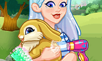Crystal encontró un conejo abandonado en el parque. El pobrecito está todo sucio. ¿Podrías ayudarla a bañar el conejo y a asegurarse de que esté bien en este juego de cuidado en línea?